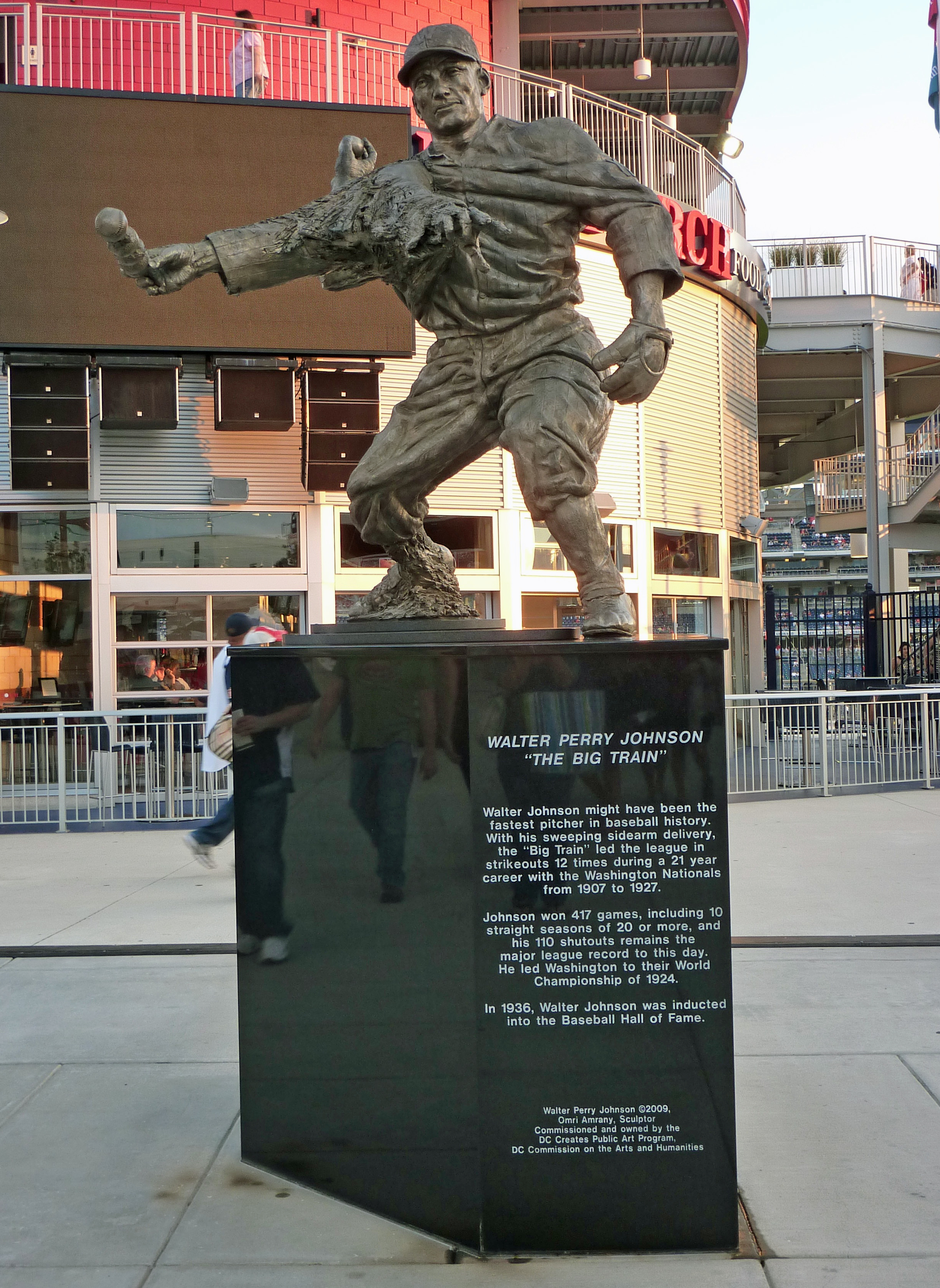 Some say Johnson was the fastest pitcher ever, though he pitched from 1907-27 long before speed guns could prove it. Johnson won a record 417 games, including 10 straight of 20 or more. His 110 shutouts are also a record. Johnson led Washington to its only World Series title in 1924 and was inducted into the National Baseball Hall of Fame in 1936. The statue conveys the speed as Johnson pitches.