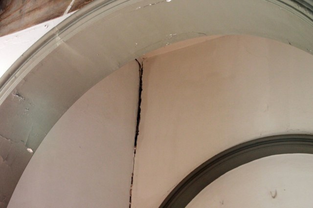 Visitors aren’t allowed upstairs at Arlington House high above Arlington National Cemetery after the Aug. 23 earthquake created several long cracks against the back wall.