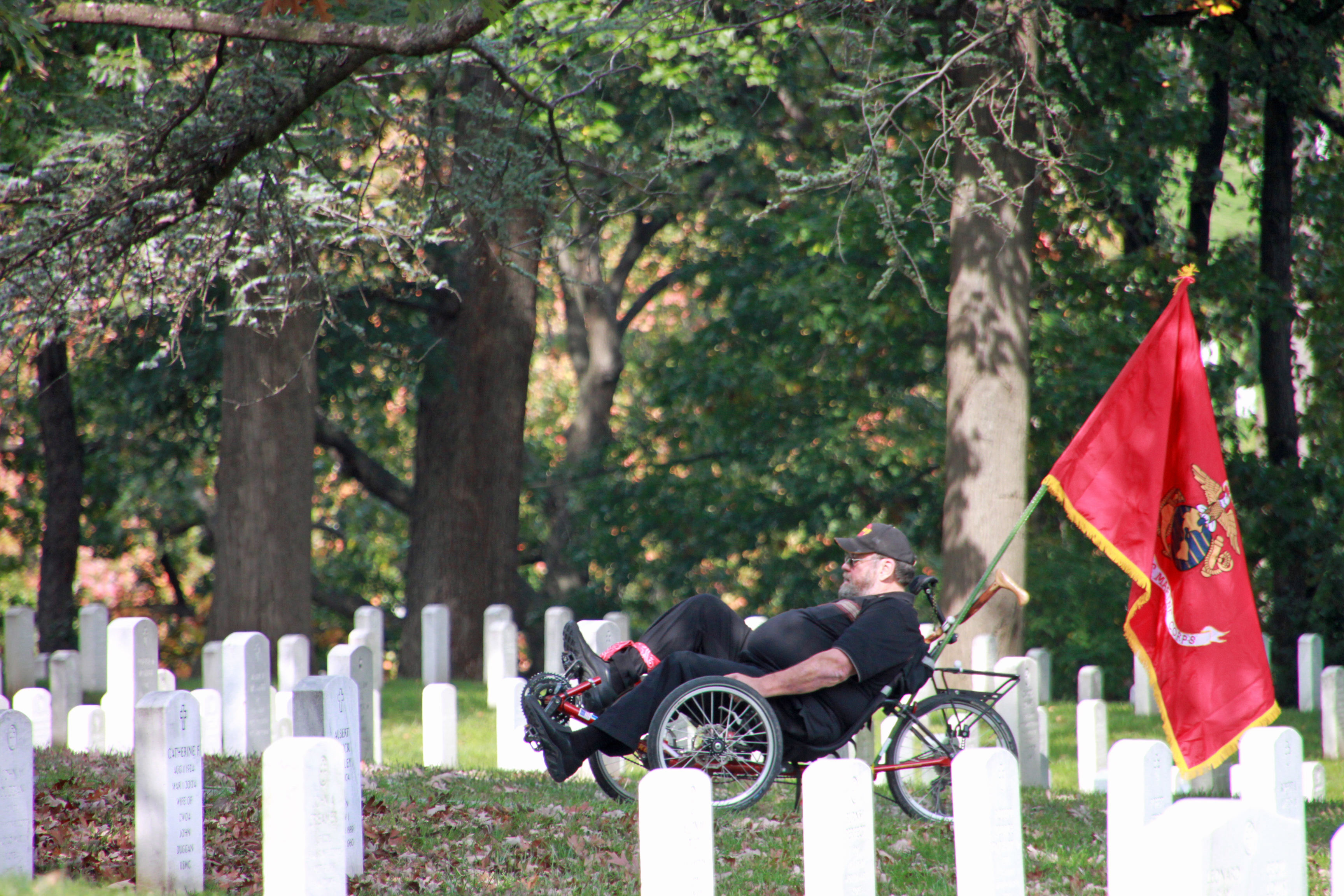 With a cane along the rail of his improvised bike, this gentleman rode to the Tomb without problem. I didn’t catch his name, but the former Marine was a very nice man in his 60s who refused to let anything stop him. Indeed, he walked the final yards to watch the changing of the guard.