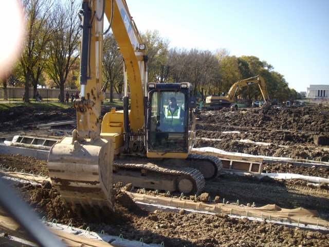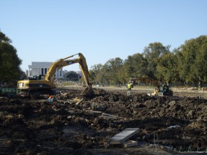 With the backhoe reaching the back row, the 18-month renovation of the Lincoln Memorial Reflecting Pool has to be turning a corner.