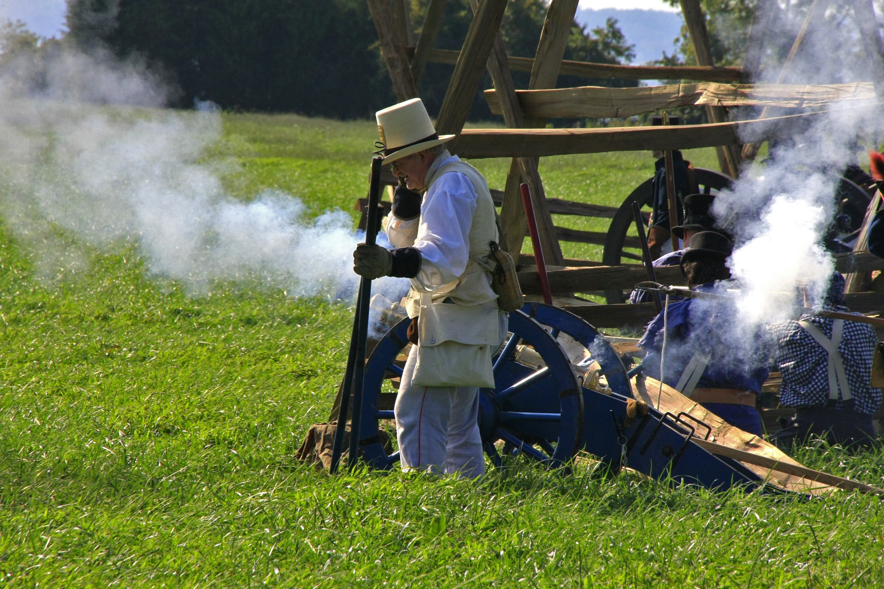 The re-enactment at Jefferson Patterson Park in St. Leonard, Md. on Sept. 22 pitted a dozen American soldiers and three cannons versus seven British soldiers. It wasn’t close. Soon, white smoke covered the field just like 200 years ago, only this time three lobsterbacks ran into the woods while four brethren layed dead and locals celebrated.