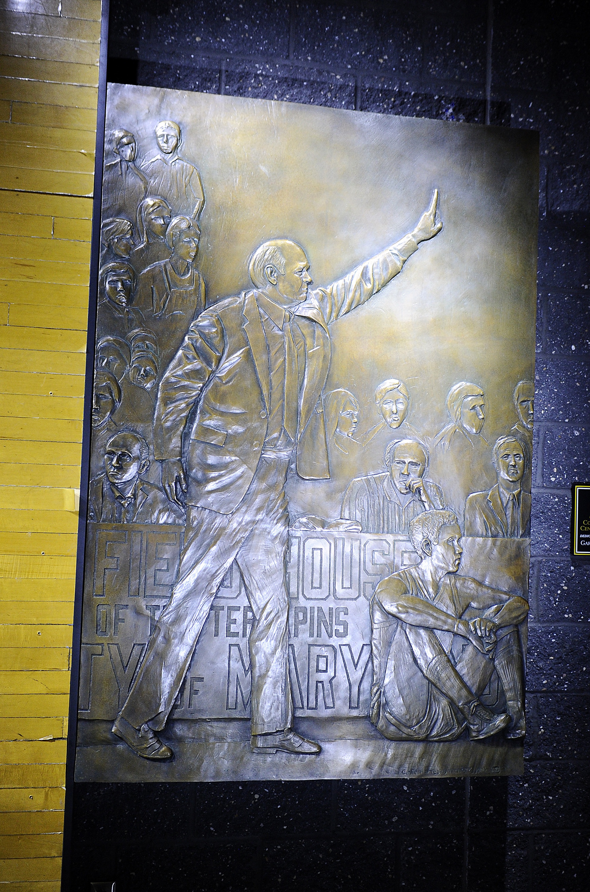 Maryland basketball coach Lefty Driesell was honored on April 16 by former players and boosters with a bas relief wall in Comcast Center next to a large center court used in Cole Field House where Driesell coached from 1969-87.