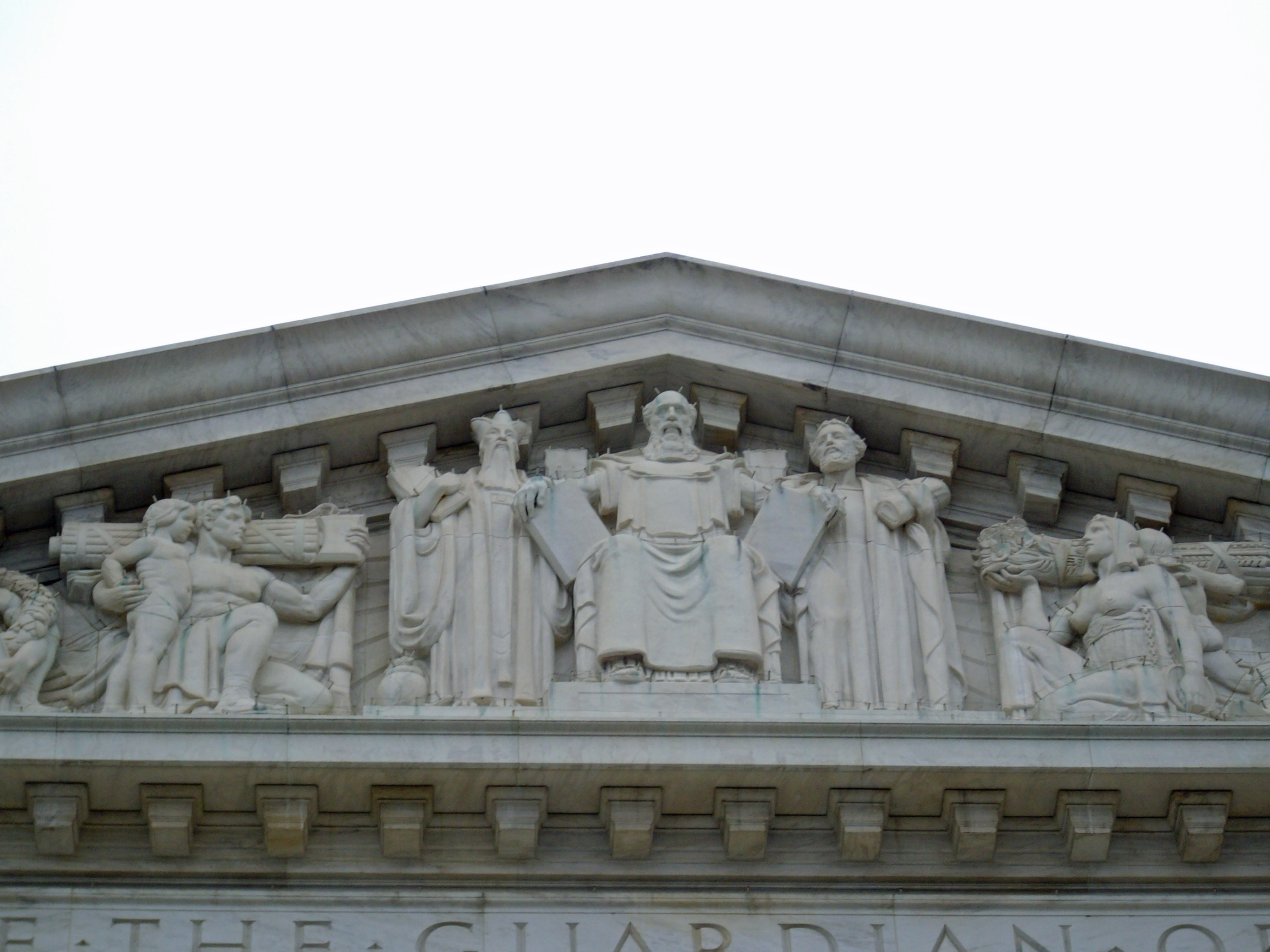 On the eastern side (facing away from National Mall) of the Supreme Court is the Guardian of Liberty pediment. I only managed to capture part of the 18 by 60 foot scene because of sun problems.