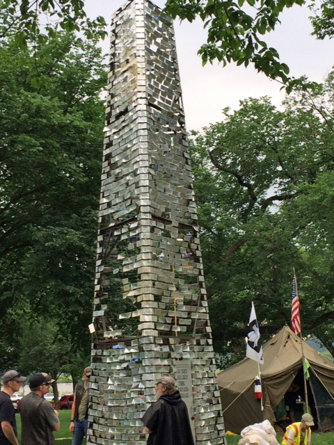 This mobile bell tower rose near the dropoff zone by the Lincoln Memorial during Memorial Day weekend. It’s patterned after the Memorial Bell Tower by N.C. State University where the bronze door has a panel stating, “And They Shall Beat The Swords Into Plowshares” that comes from the book of Isaiah in the Bible.