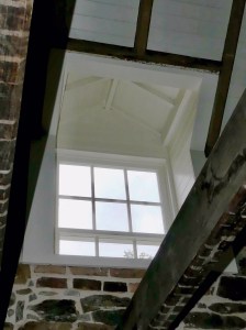 The stone structure is three floors, though the cellar isn’t open to the public, which enters on the second floor at street level. The upstairs where the family slept has only new beams and the fireplace isn’t working. But, you get the gist of the place with a large video screen showing the makeover.