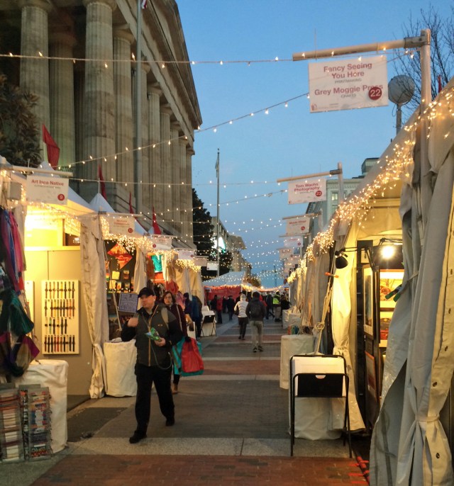 Businesses along this route generally have large wreaths along this stretch. After seeing the National Christmas Tree near 15th, you’ll pass places like the Willard Hotel, Hamilton restaurant and more. By 9th St. you’ll visit the Christmas village of local artisans. I actually bought something this year.