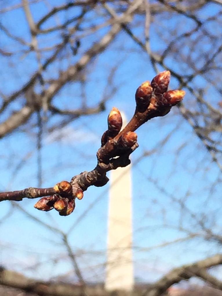 Trees along the Tidal Basin have started to bud, but just barely. My guess, which is as good as anyone’s given forecasters changed their official estimates three times last year, is peak bloom will be early. I’ll make the over/under March 23.