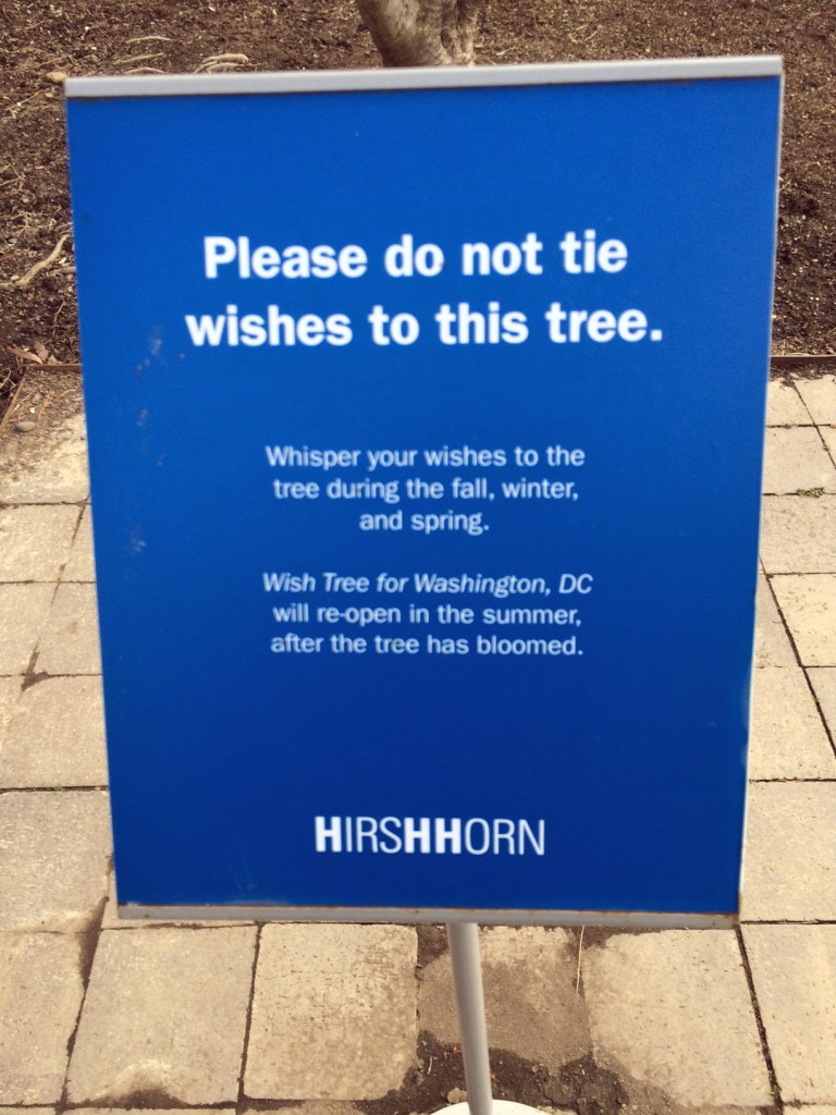 The Yoko One tree in the Hirshhorn sculpture gardens remains, but people are now asked to whisper their wishes rather than write them down and tie them to the tree until it blooms.
