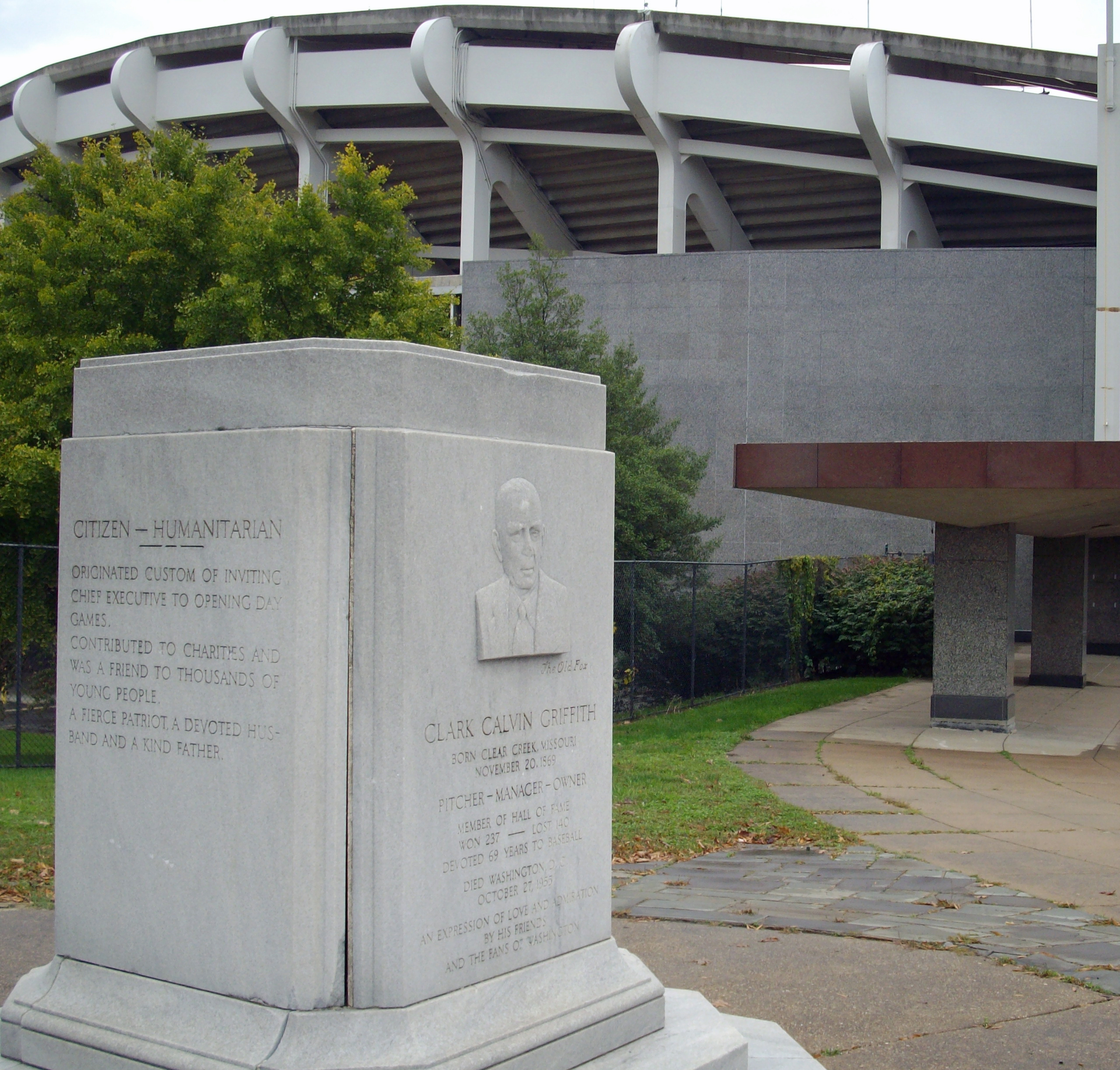 Anyway, Griffith pitched, managed and owned the Senators and even built his own stadium – Griffith Stadium – that is now the site of Howard University Hospital. The “Old Fox” died in 1955 and a monument was erected by the former stadium in 1956 and moved to RFK by 1965.