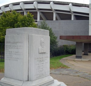 A former RFK general manager wanted to move the monument in 2001 to make way for a concession stand. He tried to give the monument to Marshall’s family. A deal was made with Marshall’s hometown for a site, but nobody wanted to pay the $30,000 shipping costs. District politicians, well aware Marshall was forced to sign black players in return for the stadium’s use, don’t want it downtown, either. So the marker remains there indefinitely.