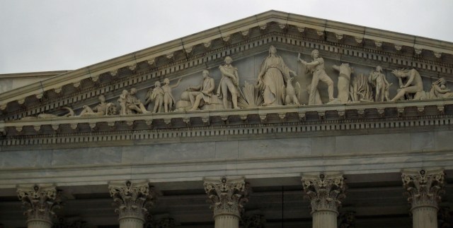 The Senate portico’s eastern front (facing the sunrise) is about America and its conquests. Frankly, the Capitol pediment pretty easy symbolism to decipher.