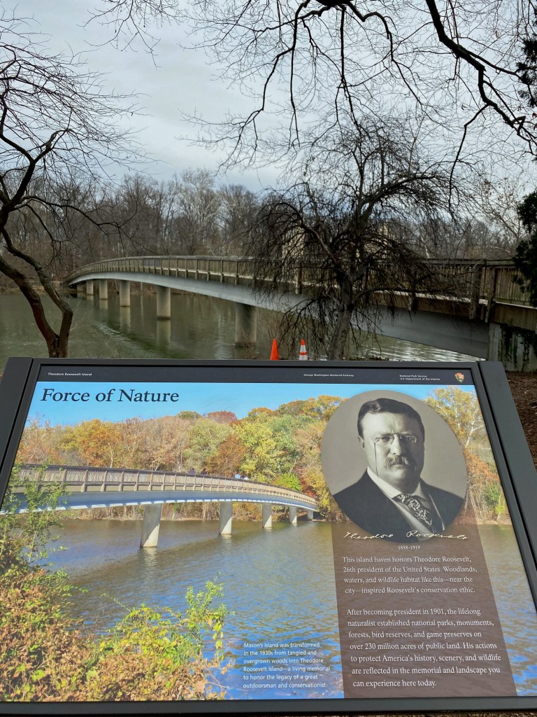 Anyway, a spit of warm weather gave me a respite from cabin fever and a yearn for a long walk to get the legs ready for tourist season. One of my favorite walks is Teddy Roosevelt Island, which is technically in Washington but only accessible by Virginia over the bridge shown above.