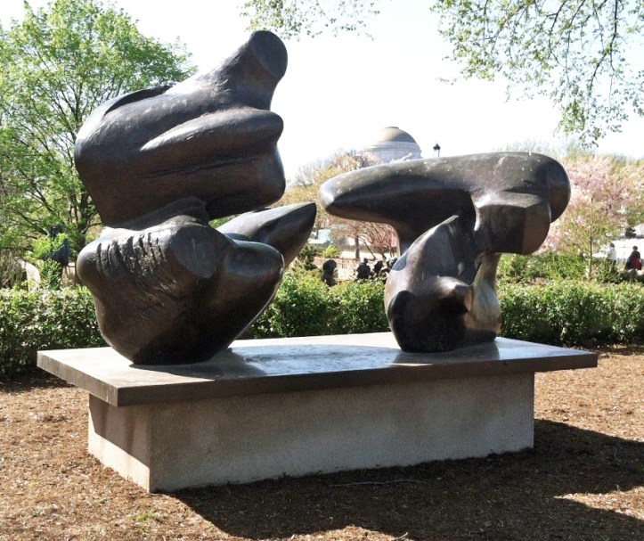 The British sculptor’s “Two-Piece Reclining Figure” by the Hirshhorn Sculpture Gardens on 7th and Jefferson N.W. is one of 7 bronze copies that is supposed to be someone lying down. You may have to squint to see it.