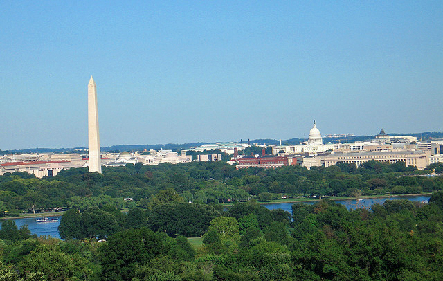 It’s not from the top of the Washington Monument despite being the highest point in town. Ditto for the Old Post Office Pavillion or the National Cathedral. And while the porch at the Newseum is great for seeing Capitol Hill, all these points aren’t as good as two places across the Potomac River.