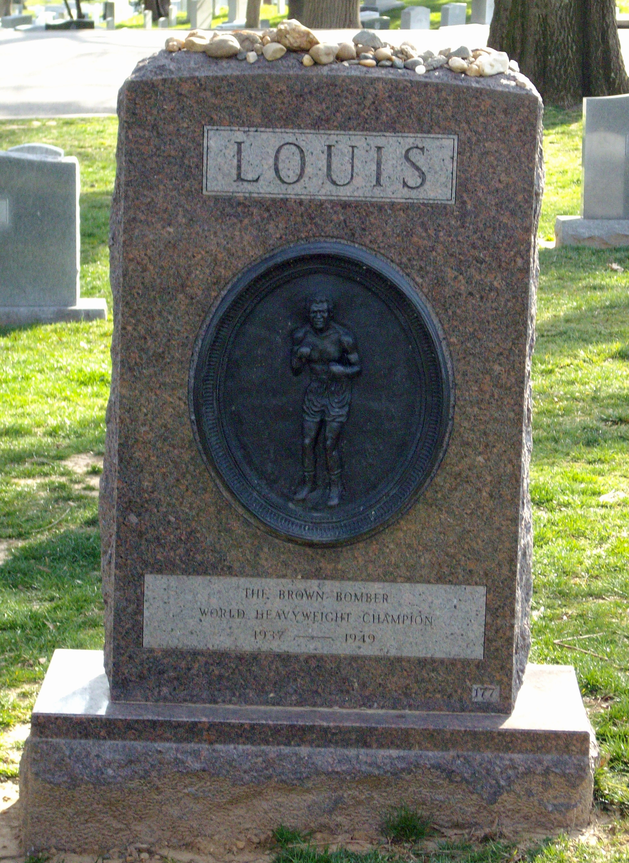 Joe “The Brown Bomber” Louis is buried at the bottom of the path in Section 7A by the benches and water fountain just below the Tomb of the Unknowns. He was heavyweight champion from 1937-49, including a 1938 victory over Max Schmeling to avenge a loss two years earlier.