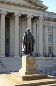 After taking their zillion photos of the north side of the White House, many tourists walk to 15th St. to catch their bus. They pass the Treasury Building along the way and always ask who’s the statue.