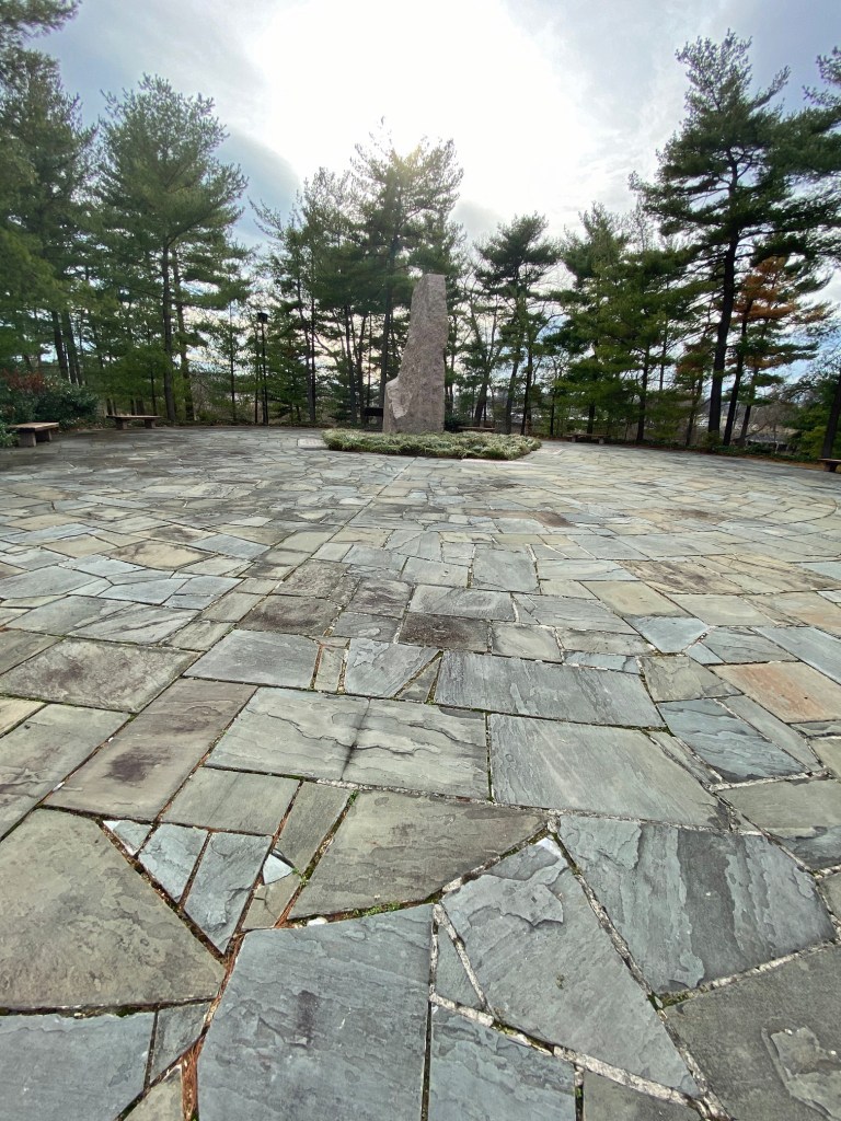 The memorial has plenty of parking and a restroom and is only a few minutes walk to the monolith. The recording of three Ladybird sayings doesn’t work.