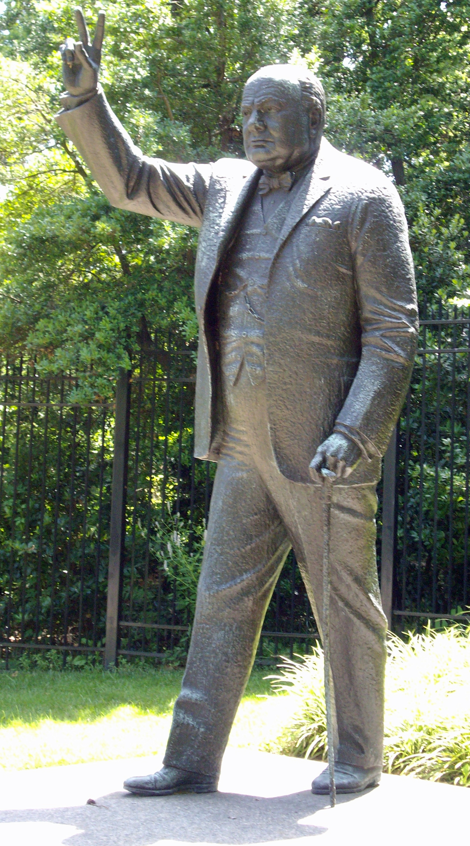Standing just below the Naval Observatory, the nine-foot bronze statue has Churchill flashing the “V” for victory sign with his right hand used by the British during the war and a cane and cigar in his left. Soil from his native Blenheim Palace, his rose garden in Chartwell, England and his mother’s home in Brooklyn lie beneath the granite base. A time capsule underneath will be opened in 2063, the 100th anniversary of Churchill’s honorary citizenship.