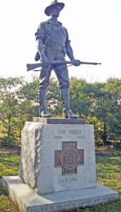 The 1906 bronze sculpture by Theodora Alice Ruggles-Kitson showing a typical infantry man was recast more than 50 times and often seen in town squares across the country. This one was dedicated on July 24, 1965.