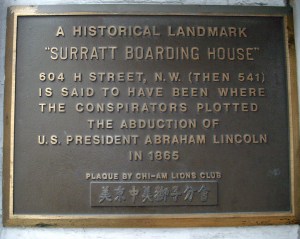 Now, don’t get this confused with the better known Surratt House in Clinton, Md. where Booth fled after killing Lincoln to pick up supplies. That was Surratt’s former home before opening the board house six months before the killings. Her husband died and Surratt rented out the then rural house to John Lloyd while she operated the downtown board house. The Clinton house is still open for tours.
