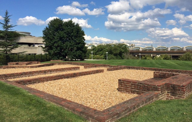 I had to check out Abingdon Plantation when first learning of it from a company specializing in unique urban sites. I’ve flown out of DCA hundreds of times since 1972 and never knew this. With some googling and help from a friend who works at the airport, I parked in Garage A and walked the sidewalk towards Garage B. And there it was. Not that you’d ever know. It can’t be seen from the road and who walks between garages?