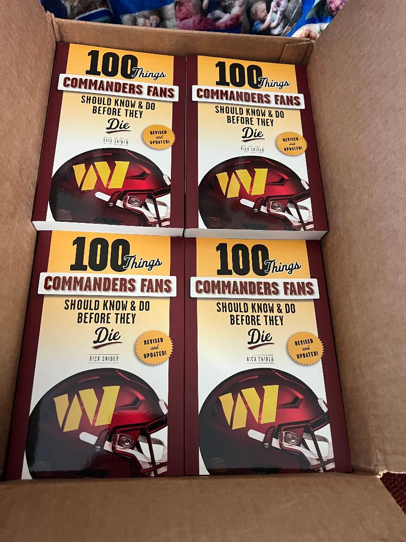 Do you know the Commanders and Redskins history? There will be a test. (Kidding) The book is on Amazon, but buy direct from author and it’s signed, sealed and delivered for $20. Just use Venmo RICK-SNIDER-30 OR PayPal RickSnider99@aol.com. Venmo users please include address.