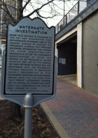“Mark Felt, second in command at the FBI, met Washington Post reporter Bob Woodward here in this parking garage to discuss the Watergate scandal. Felt provided Woodward information that exposed the Nixon administration’s obstruction of the FBI’s Watergate investigation. He chose the garage as an anonymous secure location. They met at this garage six times between October 1972 and November 1973. The Watergate scandal resulted in President Nixon’s resignation in 1974. Woodward’s managing editor, Howard Simons, gave Felt the code name “Deep Throat.” Woodward’s promise not to reveal his source was kept until Felt announced his role as Deep Throat in 2005.”