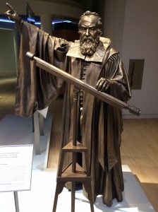 Galileo is shown with his telescope. The 17th-century scientist is known for saying the sun was the center of the universe at a time when people believed Earth was the center. When church leaders challenged Galileo, he said the Bible tells “how to go to Heaven, not how the heavens go.”