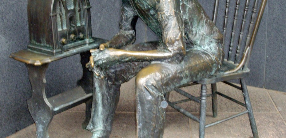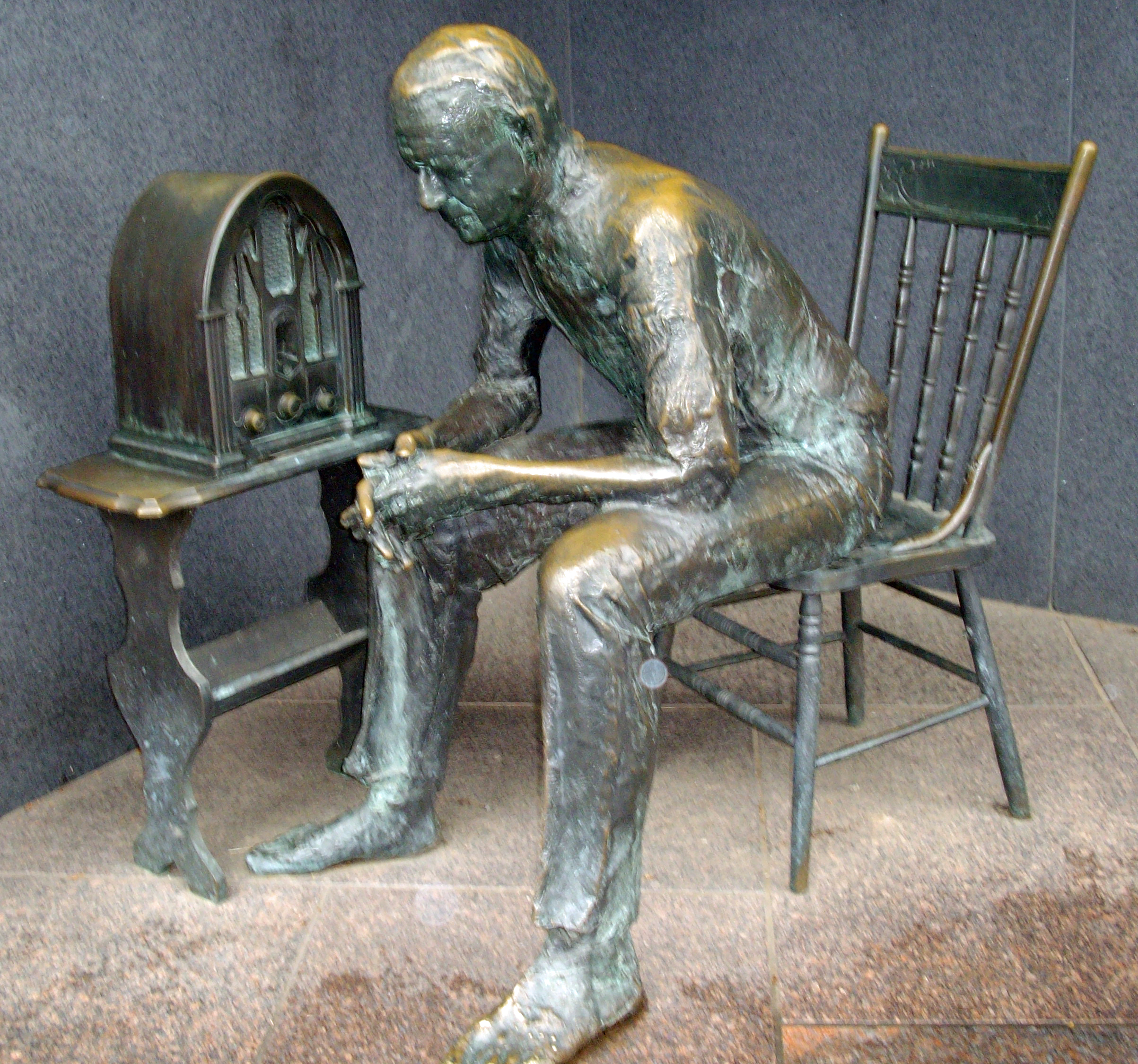 This sculpture of a farmer listening intently to the radio is in the FDR Memorial not far from the breadline.