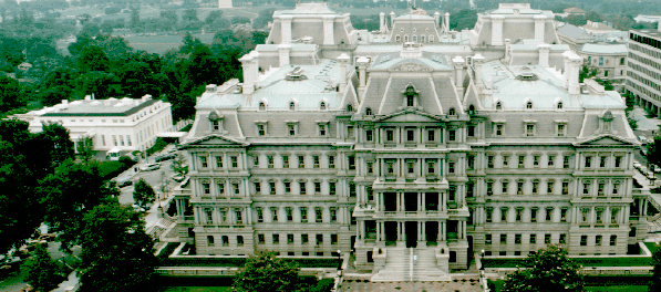 The President’s Executive Office, the Office of the Vice President, the Office of Management and Budget, and the National Security Council work inside this building. It was designed by Alfred B. Mullett.