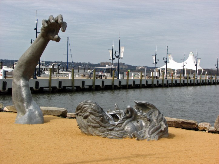 It’s closer together than the Hains Point version. Steps from the water, it’s a popular stop for tourists to climb on him.