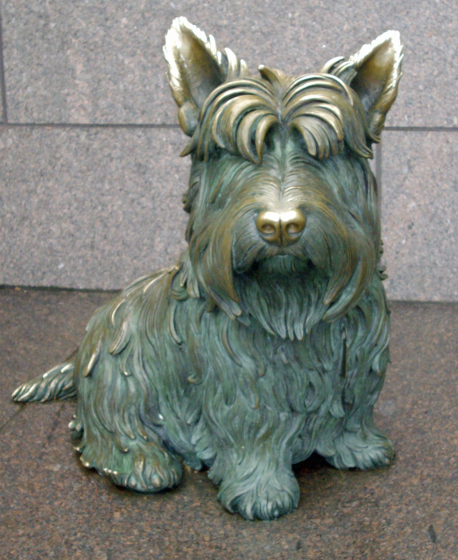 Fala was FDR’s dog and the only presidential pet honored by a statue. But, he was named after Roosevelt’s ancestor John Murray of Falahill, a place in Scotland which is only fitting given Fala is a Scottish Terrier. He was also named Murray the Outlaw of Falahil. Fala was indeed a Christmas present from FDR’s cousin.