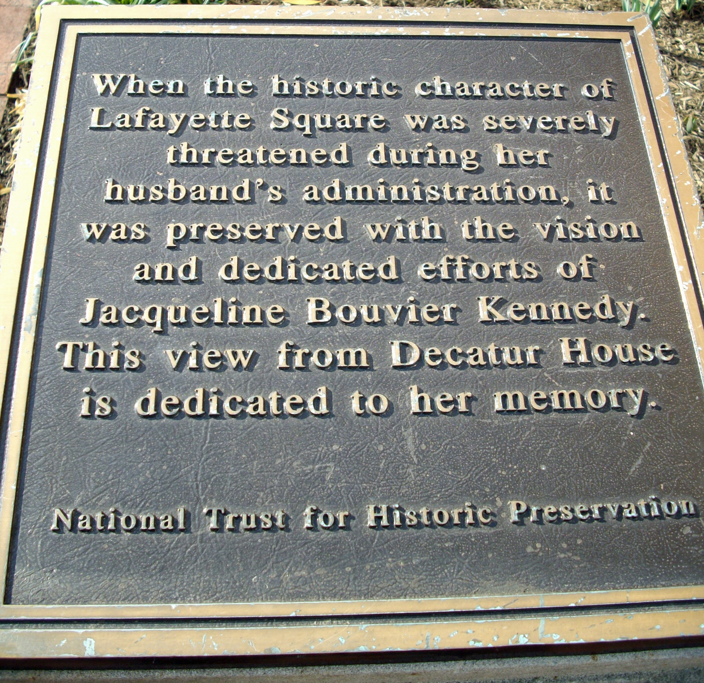 But, you can catch a glimpse of her name outside a one-time dorm along 21st St. N.W. when attending George Washington University. And, there’s a nice plaque in front of the Stephen DeCatur House at 16th and H Sts. N.W. at the northwest edge of Lafayette Park.
