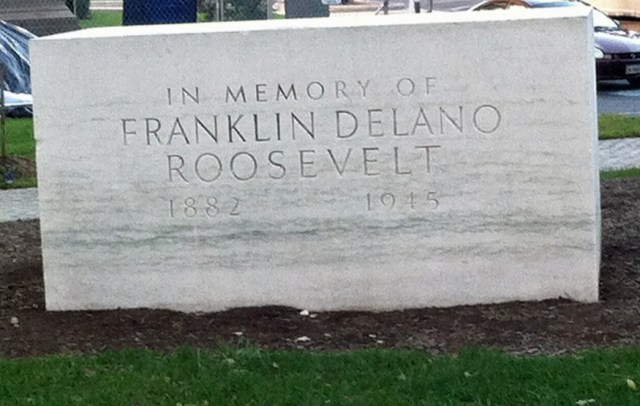 Shortly before his 1945 death while barely into his fourth term, Roosevelt told Justice Felix Frankfurter to erect a basic white monument the size of his desk. It wasn’t erected until 1965, but still sits by the National Archives along Pennsylvania Ave. N.W. The white marble cost $12,000 and paid for by admirers.