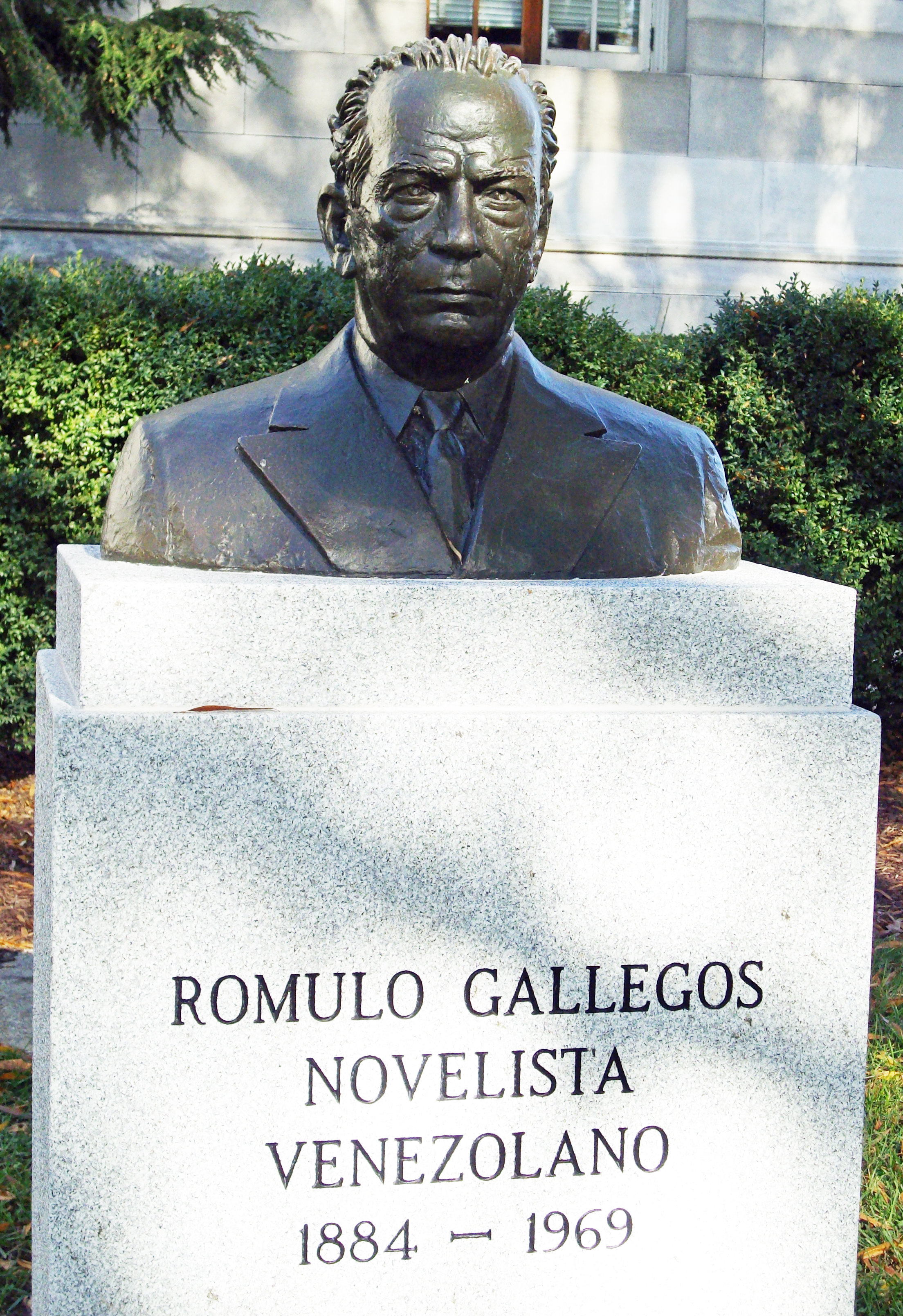 A bronze bust of Gallegos lies among the outdoor sculptures at the Organization of American States along Constitution Ave. and 18th St. N.W.