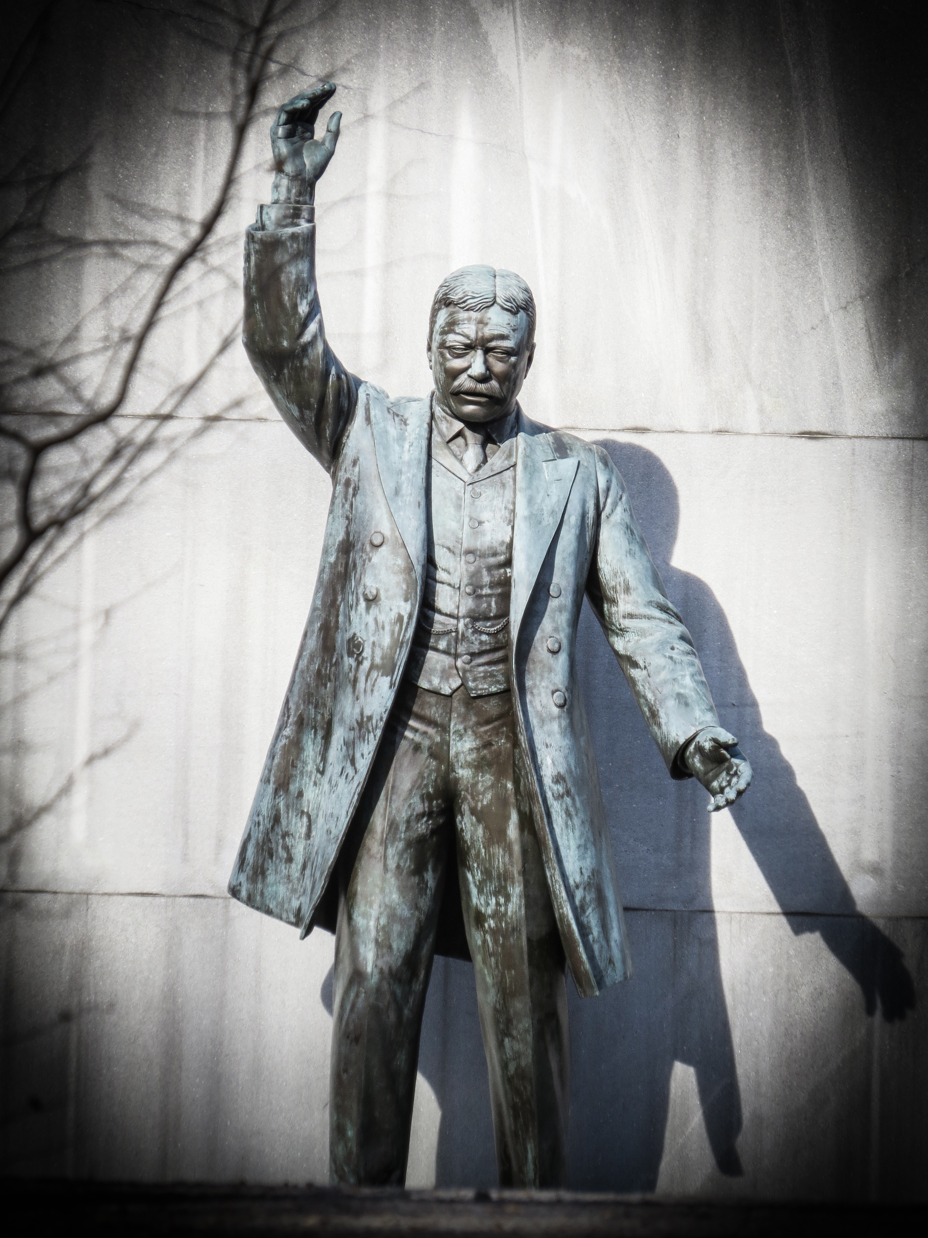It’s not a far walk until seeing Roosevelt’s 17-foot statue by Paul Manship, two fountains and four large stone monoliths with Teddy’s favorite sayings dedicated in 1967. It’s a pretty good likeness for something in the middle of nowhere.