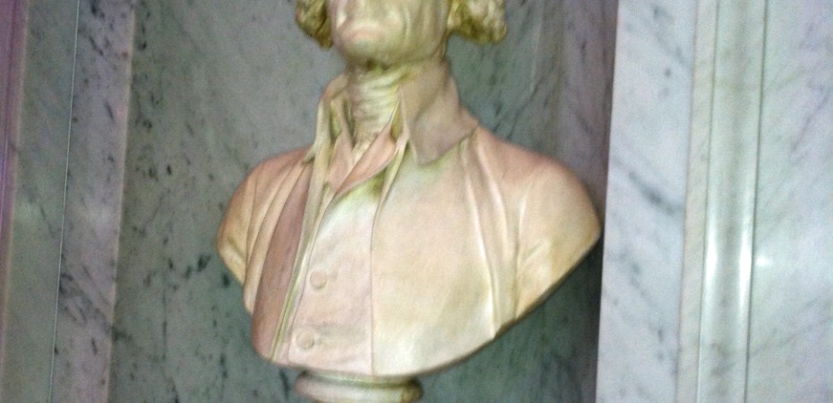 When the British burned the Capitol, White House, Navy Yard and Treasury in August 1814 as part of the War of 1812, it also torched the LOC. Jefferson’s personal library was the nation’s largest and was sold to Congress for $23,950 in 1815. Nearly two thirds of the 6,487 books were destroyed in an 1851 fire, but you can still see the remainder in glass-enclosed cases on the second floor.