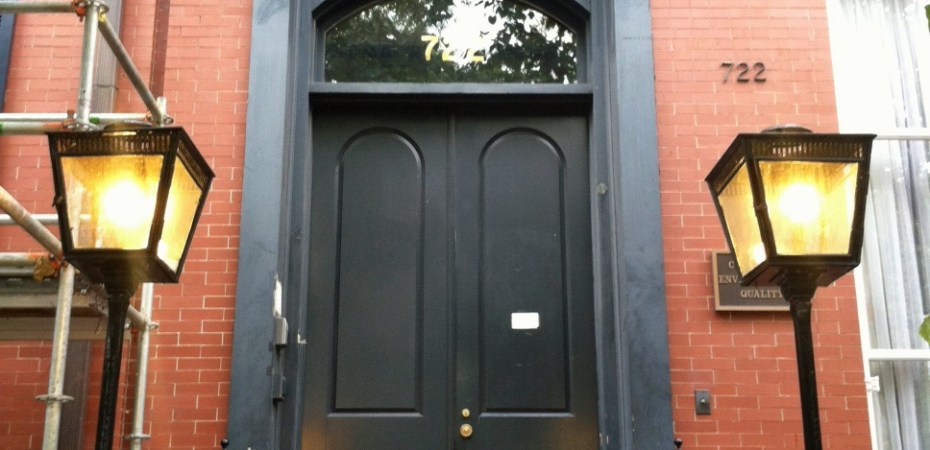 Major Henry Rathbone was in Abraham Lincoln’s box when murdered by John Wilkes Booth. His home is 712 Jackson Place on the western side of the park and near a fountain. The black door and red brick exterior seem fitting with the street that is now mostly government buildings, including Rathbone’s.